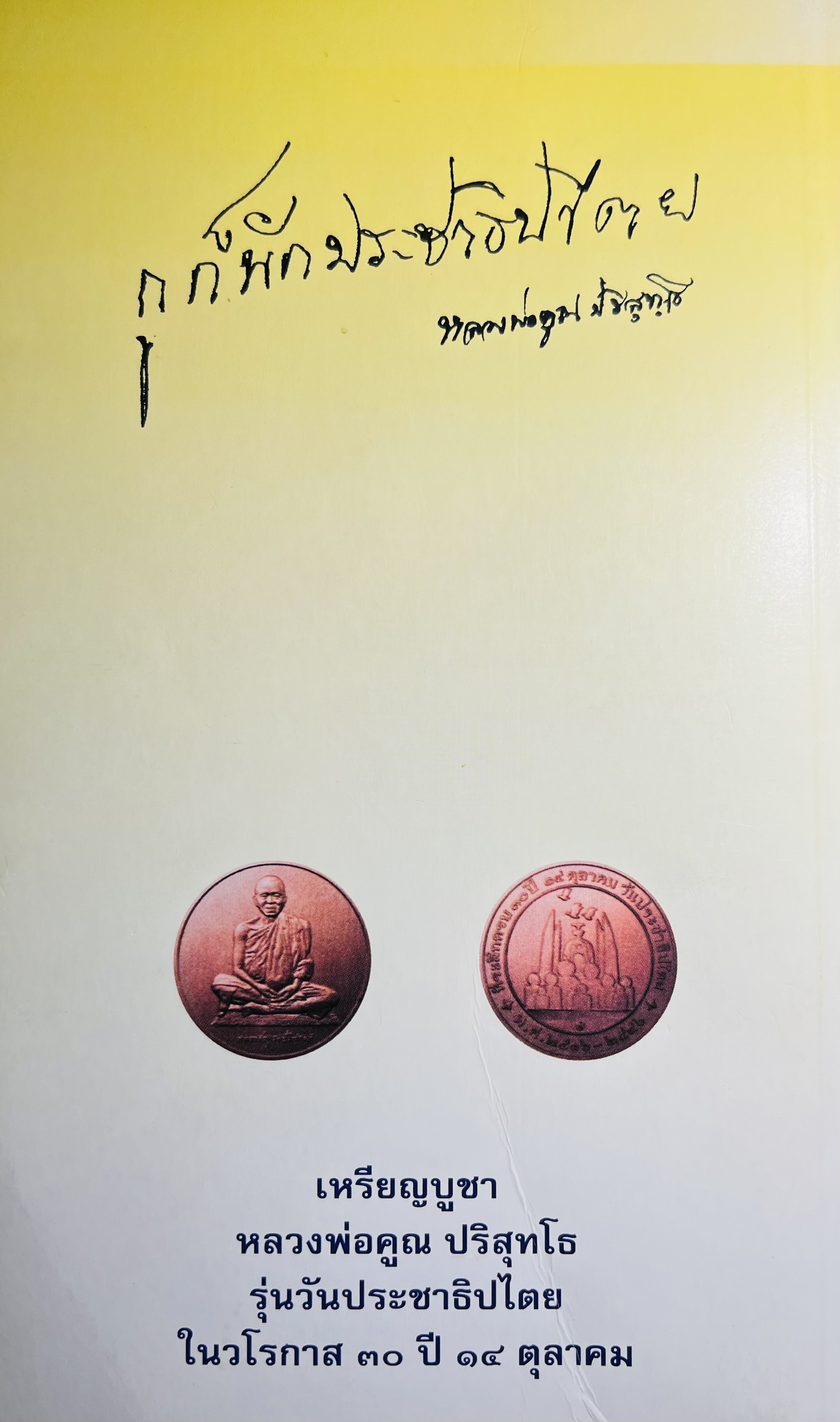 เหรียญหลวงพ่อคูณ วัดบ้านไร่ จ.นครราชสีมา รุ่น ที่ระลึกครบ 30 ปี 14 ตุลาคม วันประชาธิปไตย จัดสร้างขึ้นเพื่อเป็นที่ระลึกในโอกาสครบรอบ 30 ปี วันประชาธิปไตย (14 ตุลาคม 2516 – 14 ตุลาคม 2546) โดย คณะอนุกรรมการ ฝ่ายปฎิบัติการ จัดหาทุนฯ สำนักงานเลขาธิการสภาผู้แทนราษฎร ผลิตโดย สำนักกษาปณ์ กรมธนารักษ์ และประกอบพิธีพุทธาภิเษก ณ วัดบ้านไร่ อ.ด่านขุนทด จ.นครราชสีมา เมื่อวันที่ 4 กันยายน 2546